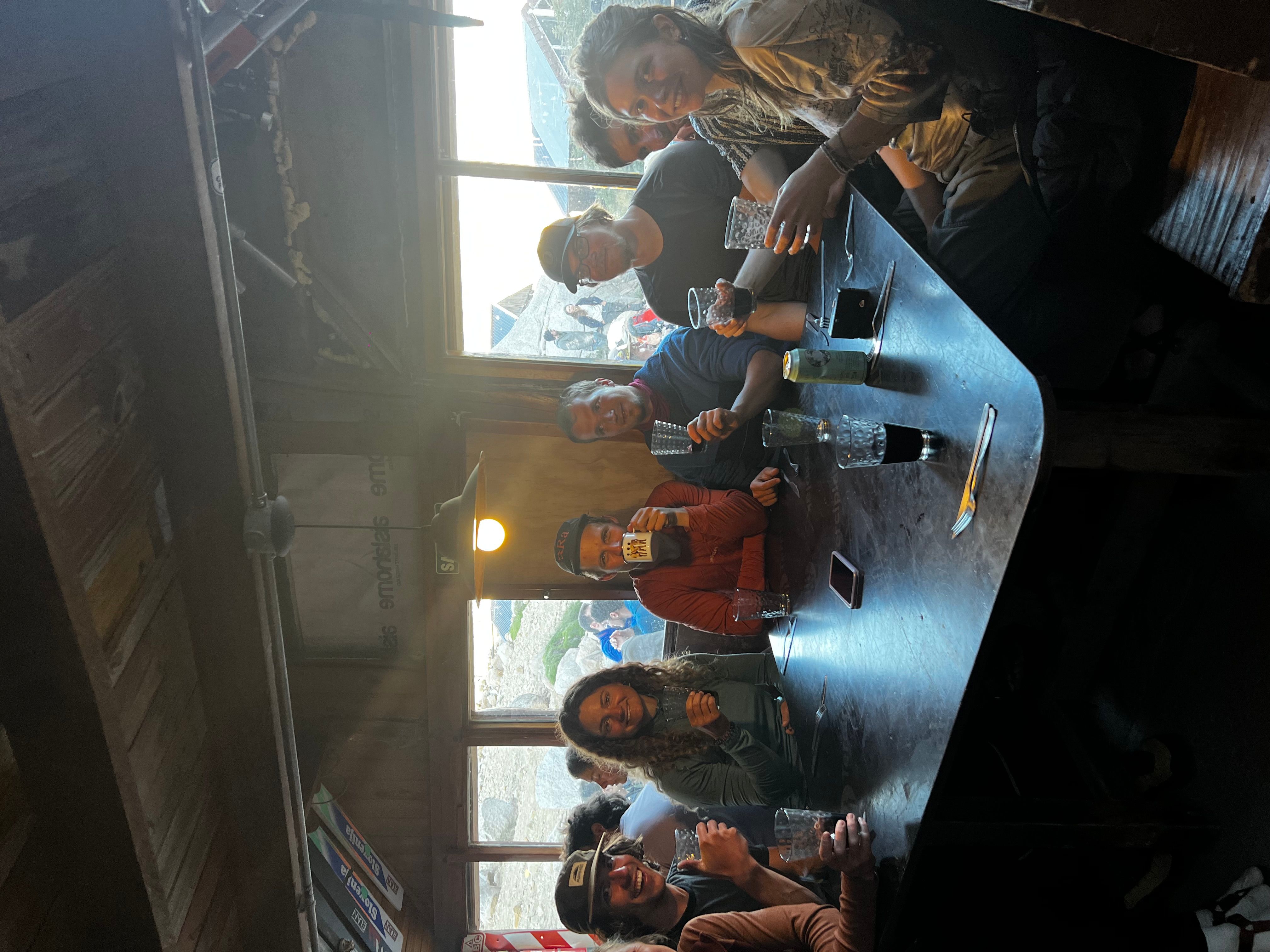Nede ved hytta stÞter vi pÄ noen andre klatrere, og stÄr i godt selskap mens vi spiser middag. Hytta har mange fotturister som besÞker Frey pÄ en hytte-til-hytte tur. I tillegg er det ca. 20 klatrere som er her i 1-2 uker av gangen. Det virker som at det er mange her som skal bli over jul og vi gleder oss allerede til Ä oppleve feiringa med dem.